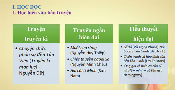+ Truyện: Nhận biết và phân tích được đặc điểm của thể loại truyện.