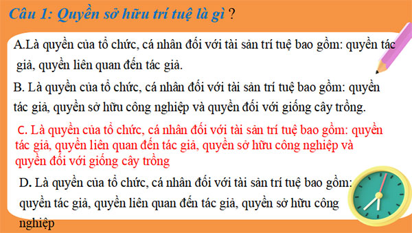 Quyền sở hữu trí tuệ là quyền của tổ chức, cá nhân đối với tài sản trí tuệ, bao gồm quyền tác giả và quyền liên quan đến quyền tác giả, quyền sở hữu công nghiệp và quyền đối với giống cây trồng.