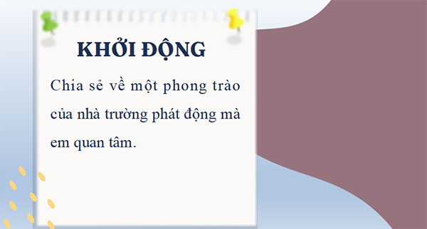 b. Nội dung: Chia sẻ về một hoạt động, phong trào của nhà trường phát động mà em quan tâm.