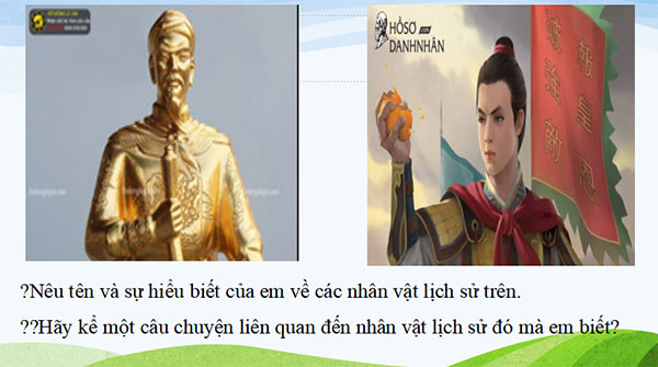- Từ chia sẻ của HS, GV dẫn dắt vào bài học mới: Đất nước của chúng ta được xây dựng và gìn giữ qua rất nhiều thế hệ, có rất nhiều những nhân tài hào kiệt đã tham gia vào công cuộc ấy. Hôm nay chúng ta sẽ được tìm hiểu về một anh hùng trẻ tuổi – Trần Quốc Toản để hiểu rõ hơn về những phẩm chất tốt đẹp của ông.