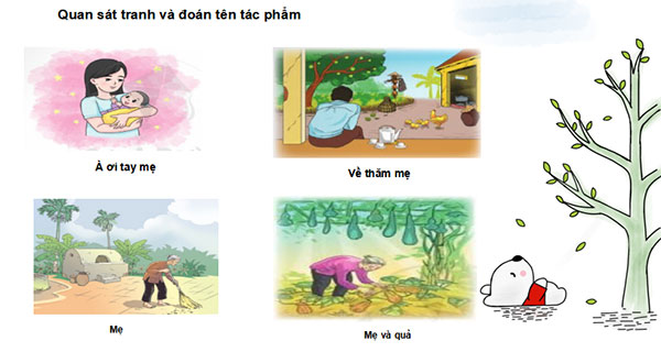 - GV đặt câu hỏi gợi dẫn, yêu cầu HS: Kể tên một số văn bản có đề tài viết về người mẹ.