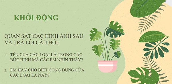 a. Mục tiêu: Tạo hứng thú cho HS, thu hút HS sẵn sàng thực hiện nhiệm vụ học tập của mình từ đó HS khắc sâu kiến thức nội dung bài Những chiếc lá thơm tho