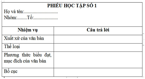 2. Tìm hiểu chung về văn bản (Phiếu học tập số 1) |