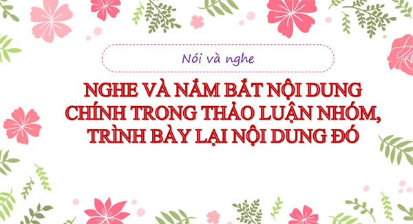 Biết nghe và nắm bắt nội dung chính trong thảo luận nhóm, trình bày lại nội dung.