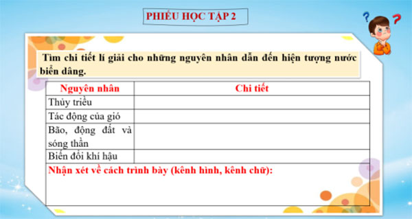- Năng lực thu thập thông tin liên quan đến chủ đề biến đổi khí hậu và nước biển dâng.
