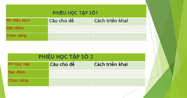 - Bảng giao nhiệm vụ học tập cho học sinh ở nhà;