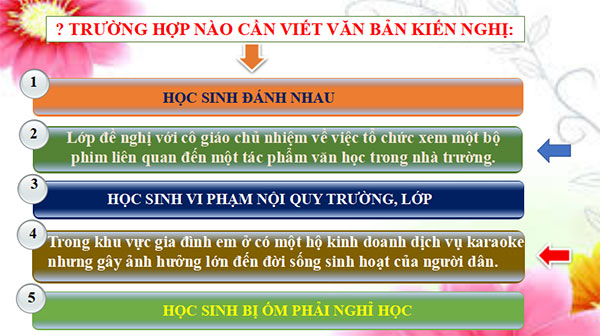 - Những trường hợp nào sau đây ta cần viết văn bản kiến nghị về một vấn đề đời sống: