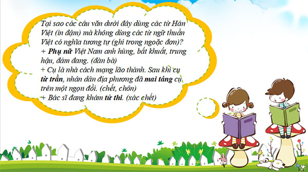 - GV đặt câu hỏi phát vấn ““Em đã từng gặp khó khăn khi lựa chọn từ ngữ phù hợp khi viết văn hoặc làm bài tập của GV cho chưa? Nếu có, em giải quyết nó như thế nào?”