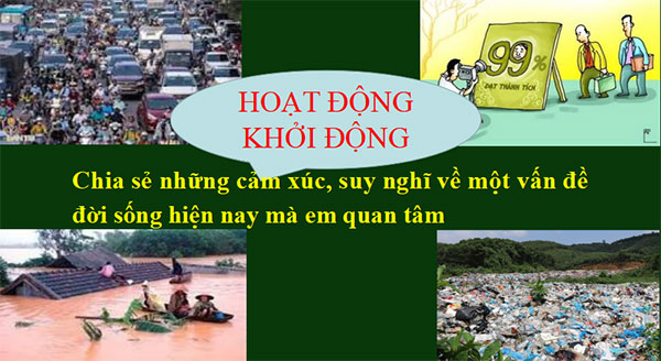 - GV yêu cầu HS chia sẻ những cảm xúc, suy nghĩ về một vấn đề đời sống hiện nay mà em quan tâm