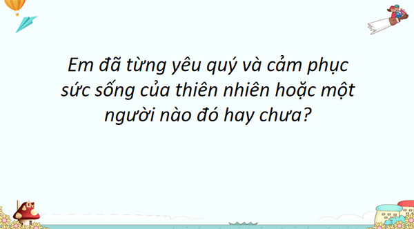 GV: Em đã từng yêu quý và cảm phục sức sống của thiên nhiên hoặc một người nào đó hay chưa?