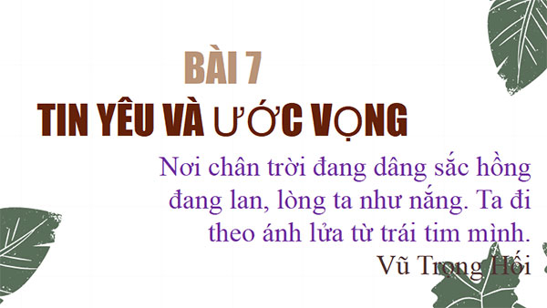 BÀI 7: TIN YÊU VÀ ƯỚC VỌNG