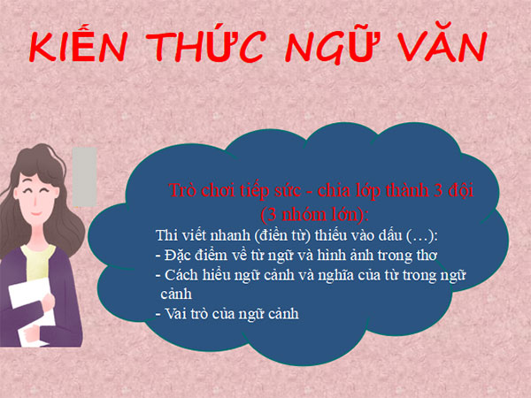 - Nhận biết và nêu được tác dụng của một số biện pháp tu từ có trong văn bản; công dụng của dấu chấm lửng; ngữ cảnh và nghĩa của từ trong ngữ cảnh.
