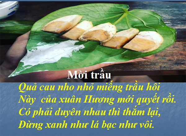 - Tranh ảnh về nhà thơ Hồ Xuân Hương và văn bản “Mời trầu”…