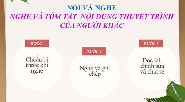 NGHE VÀ TÓM TẮT NỘI DUNG THUYẾT TRÌNH CỦA NGƯỜI KHÁC