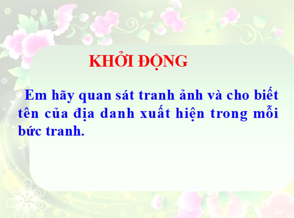 - Quan sát đoạn các tranh ảnh sau, em cho biết tên của các địa danh xuất hiện trong mỗi bức tranh. Nêu hiểu biết của em về nền văn hóa của đất nước có các địa danh này.