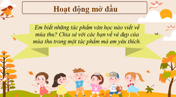 - Học sinh nêu cảm nhận về vẻ đẹp của mùa thu được phác họa trong văn bản mà em yêu thích nhất. Thấy được phần nào mối liên hệ giữa nhà văn và trang viết.