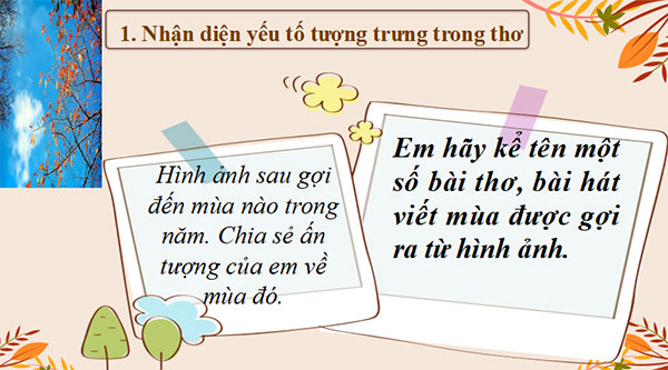 - Kết nối vào nội dung đọc – hiểu văn bản: Mùa thu là mùa đẹp. Viết về mùa thu, văn chương xưa và nay có bao tác phẩm đặc sắc. Mỗi người cầm bút lại đem đến một phong cách riêng độc đáo. Trong đó phải kể đến ba bài thơ thu “nức danh” của Nguyễn Khuyến – thi sĩ được mệnh danh là “nhà thơ của mùa thu thôn quê Việt Nam”. Và Xuân Diệu đã từng viết bài bình đặc sắc về chùm ba bài thơ thu ấy. Tìm hiểu văn bản “Nhà thơ của quê hương làng cảnh Việt Nam” để thấy vẻ đẹp của chùm ba bài thơ thu dưới góc độ của một nhà phê bình văn học. Từ đó học tập cách viết bài nghị luận văn học về tác phẩm thơ.