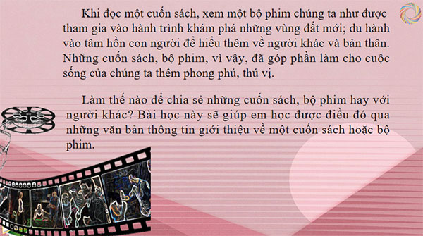 Làm thế nào để chia sẻ những cuốn sách, bộ phim hay với người khác? Bài học này sẽ giúp em học được điểu đó qua những văn bản thông tin giới thiệu về một cuốn sách hoặc bộ phim.