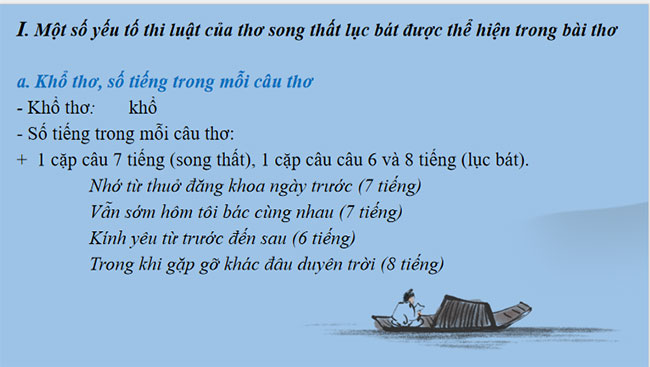 - Tìm hiểu một số yếu tố thi luật của thơ song thất lục bát được thể hiện trong bài thơ