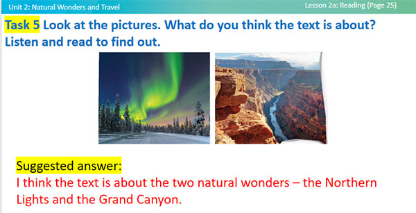 - Read for specific information. - Talk about a natural wonder in their country using the learned vocabulary. |