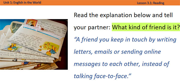 - Work in pairs, ask and answer the questions. - Share/exchange the answers with the class. Suggested answers: 1. Some friends I chat with daily, while others I talk to once a week or even less. 2. We play online games, watch movies or shows together while chatting, share music playlists, or even work on projects together like writing stories or planning trips. 3. Definitely! They've taught me about their cultures, shared cool facts, and recommended books or movies I wouldn't have found otherwise. |