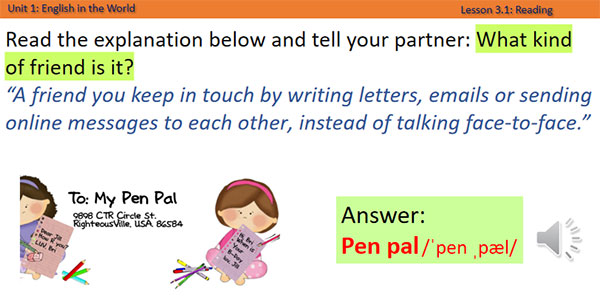 c. Expected outcomes: Ss can talk about pen pals and activities they can do with their pen pals.