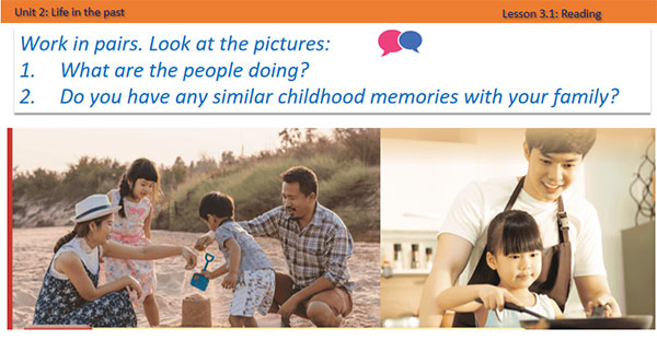 Let’s talk: Look at the title of the unit and the picture. Answer these questions: 1. What are the people doing? 2. Do you have any similar childhood memories with your family?
