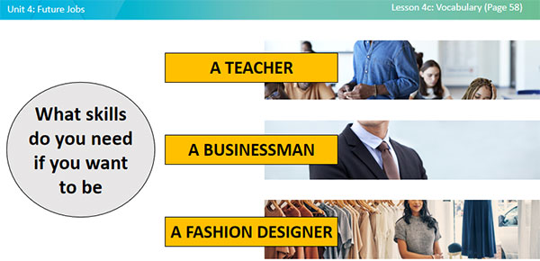 WHAT DO WE NEED? - Ask students about the requirements of some jobs: What skills do you need if you want to be: 1. An English teacher 2. A businessman 3. A fashion designer