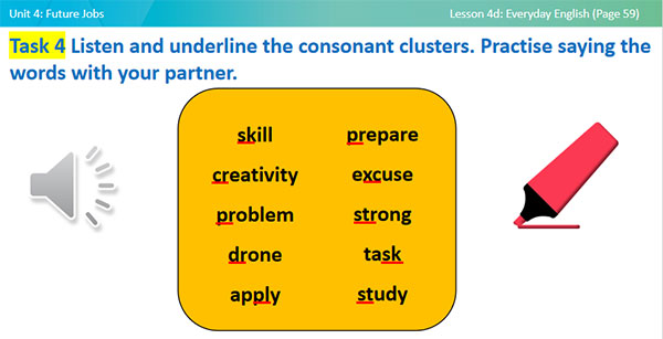 Task 4. Listen and underline the consonant clusters. Practise saying the words with your partner.