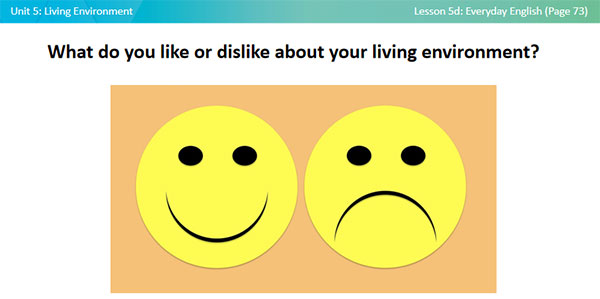Talk about their living environment: - Ask students about their living environment: “What do you like or dislike about your living environment?”