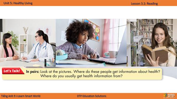 Let’s talk: Look at the pictures. Where do these people get information about health? Where do you usually get health information from?