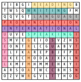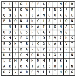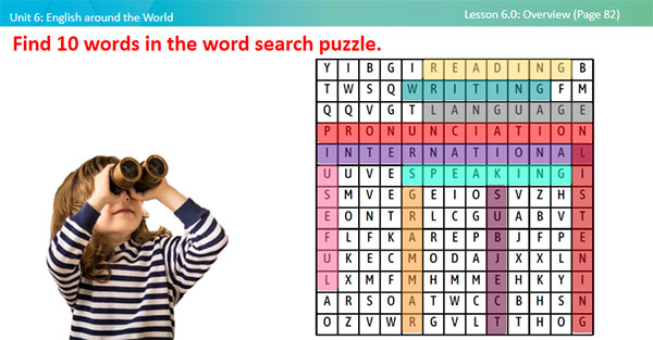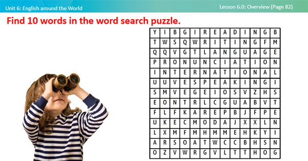 - Ask students to work in groups of four, and find 10 words in the word search puzzle. - Check students’ answers. - Lead in the lesson with a question: “What is the subject related to 10 words?”
