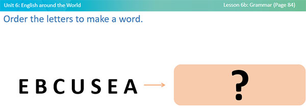 - Explain the task to students. - Ask students to order the letters to make a word.