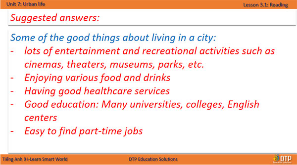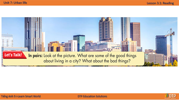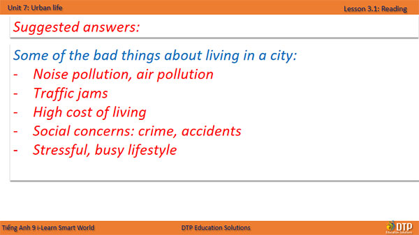 c. Expected outcomes: Ss can talk about some of the good and bad things about living in a city.