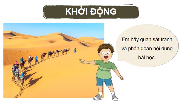 + Nói được những điều đã biết về sa mạc; nếu được phỏng đoán về nội dung bài đọc qua tên bài, tranh minh hoạ và hoạt động khởi động.