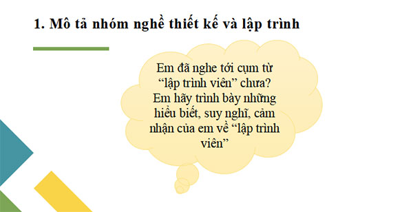 Hoạt động 1: Tìm hiểu nhóm nghề thiết kế và lập trình