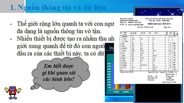 + Biết khái niệm nguồn thông tin và dữ liệu