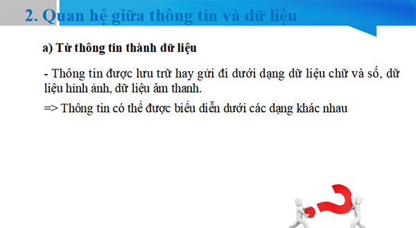 + Biết quan hệ giữa thông tin và dữ liệu