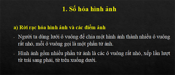 - Giải thích được sơ lược cách số hóa hình ảnh.