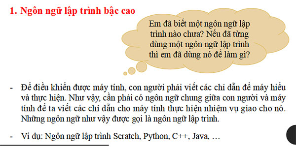 Hoạt động 1: Tìm hiểu Ngôn ngữ lập trình bậc cao