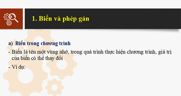 - Mục Tiêu: Biết được vai trò của biến và phép gán
