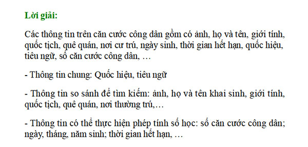 Hãy chia những thông tin đó thành các nhóm, ví dụ nhóm các thông tin có thể tách ghép được hay so sánh được để tìm kiếm và nhóm các thông tin có thể thực hiện được với các phép tính số học.
