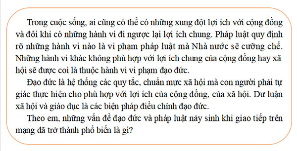 Theo em, những vấn đề đạo đức và pháp luật nảy sinh khi giao tiếp trên mạng đã trở thành phổ biến là gì?