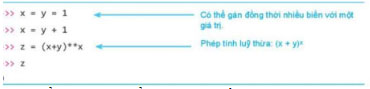 - Có thể gán giá trị biểu thức cho biến. Cú pháp: <biến> = <biểu thức> - Khi thực hiện lệnh này, Python sẽ tính giá trị <biểu thức> và gán kết quả cho <biến> => mọi biến có trong <biểu thức> đều cần được xác định giá trị trước. Ví dụ: