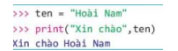 - Có thể gán nhiều giá trị đồng thời cho nhiều biến. Cú pháp của lệnh gán đồng thời: <var1>, <var2>, …, <varn> = <gt1>, <gt2>, …, <gtn> Ghi nhớ: - Biến là tên của một vùng nhớ dùng để lưu trữ giá trị (dữ liệu) và giá trị đó có thể được thay đổi khi thực hiện chương trình. - Cú pháp lệnh gán: <biến> = <biểu thức> - Quy tắc đặt tên biến (định danh): + Chỉ gồm các chữ cái tiếng Anh, các chữ số từ 0 đến 9 và kí tự gạch dưới “_”. + Không bắt đầu bằng chữ số. + Phân biệt chữ hoa và chữ thường. |