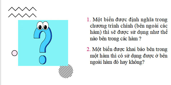 1. Một biển được định nghĩa trong chương trình chính (bên ngoài các hàm) thì sẽ được sử dụng như thế nào bên trong các hàm ?