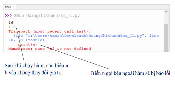 Trong Python tất cả các biển khai báo bên trong hàm đều có tính địa phương (cục bộ), không có hiệu lực ở bên ngoài hàm.