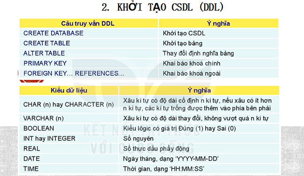 - SQL có 3 thành phần là DDL, DML, DCL.
