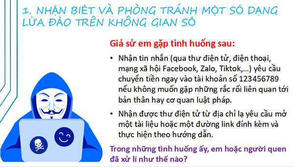 - Nêu được một số dạng lừa đảo phổ biến trên không gian số và những biện pháp phòng tránh.