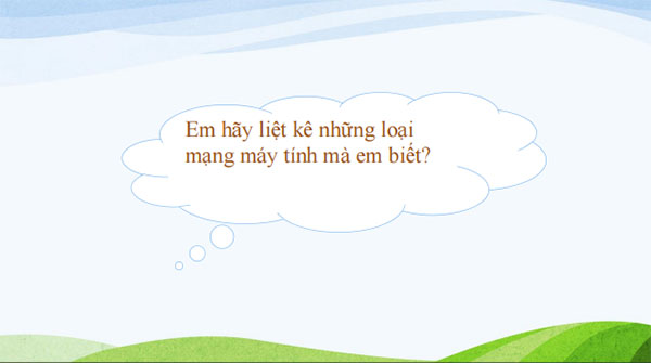 Câu hỏi: em hãy liệt kê những loại mạng máy tính mà em biết?